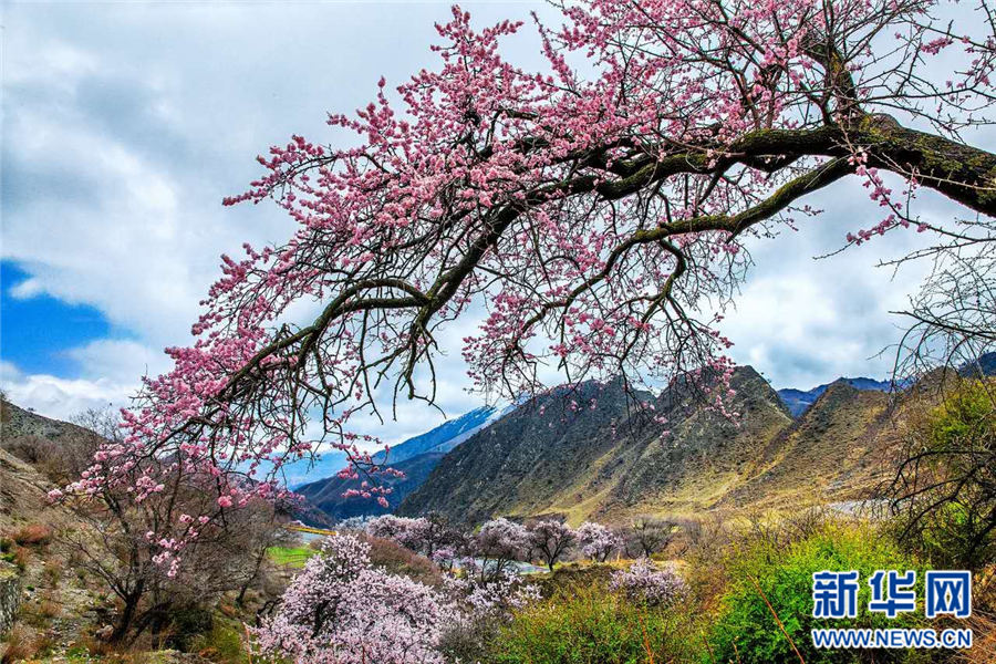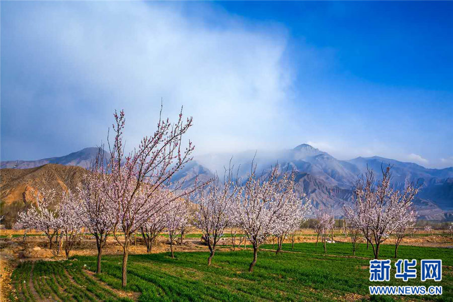 不去西藏林芝,你也能在贵德看到雪山脚下的杏花村。新华网 黄剑平 摄