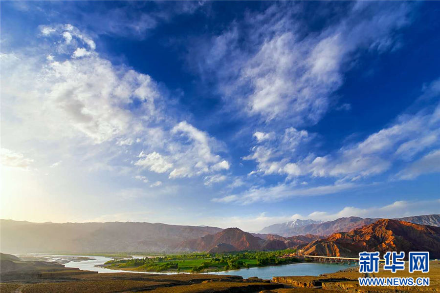 贵德的黄河是碧绿的,贵德的丹霞是火红的。新华网 黄剑平 摄